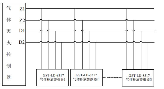 布線要求:信號總線Z1、Z2采用阻燃RVS雙絞線,截面積≥1。0mm2;電源線D1、D2采用阻燃BV線,截面積≥1。5mm2。